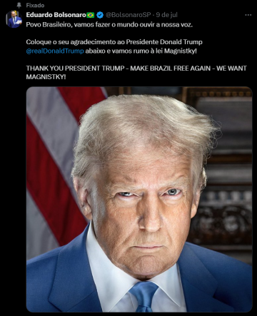 O parlamentar se posicionou a favor, na noite de quarta-feira (9), e ainda diz que deve-se agradecer Trump pela atitude: “Coloque o seu agradecimento ao Presidente Donald Trump abaixo e vamos rumo à lei Magnistky!”
