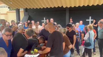 Namorado chora em cima de caixão de jovem morta durante assalto em SP