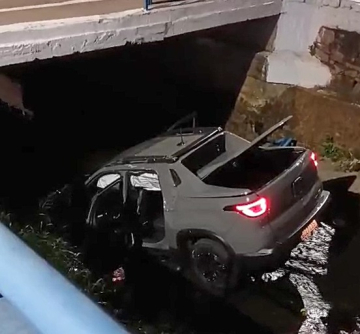 Um motorista caiu com o carro em um córrego na noite desta sexta-feira (26), no centro de Itu.
