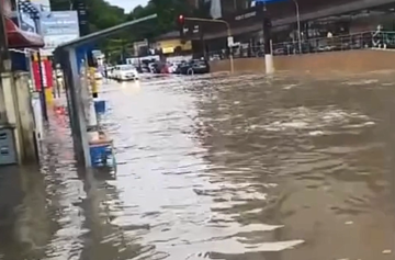 Sirene é acionada no Guarujá após chuvas alagarem a cidade