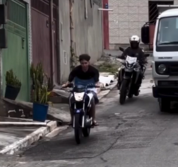 Nas imagens, é possível ver um jovem sem capacete, acelerando uma moto enquanto sobe uma rua íngreme. Ao voltar, ele é seguido por uma motocicleta da polícia, já que estava cometendo infrações.