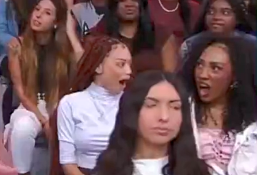 O apresentador criticava a eleição de Erika Hilton para a presidência da Comissão da Mulher, quando as jovens demonstraram semblantes de indignação com a opinião do apresentador do SBT. Uma delas parece demonstrar revolta com as palavras de Ratinho.